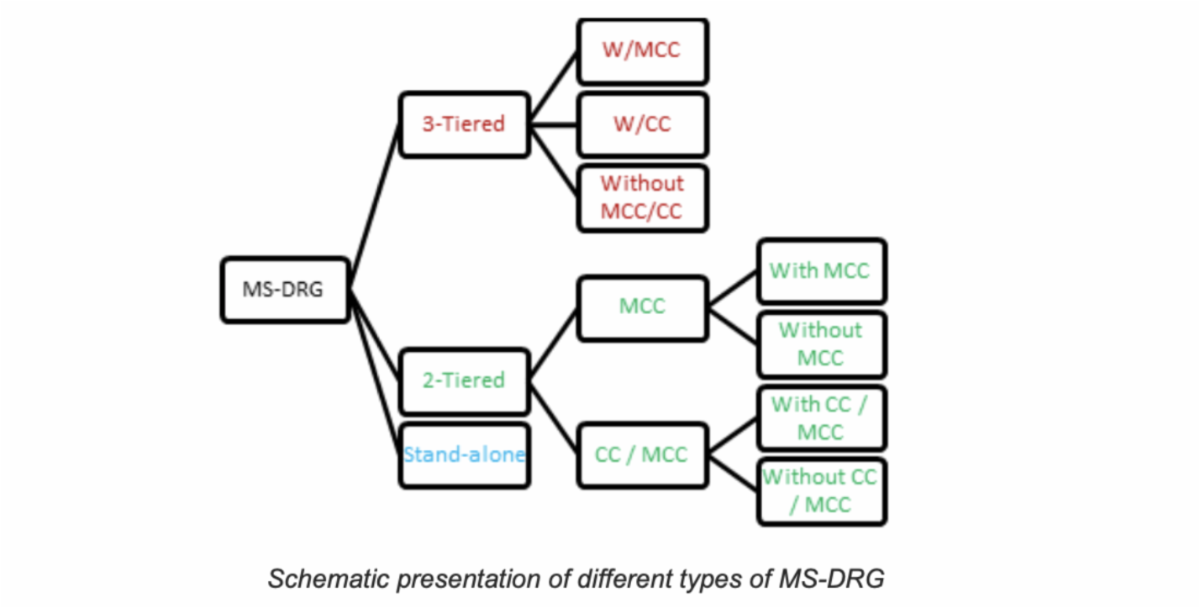 Some secondary diagnoses are designated as risk-adjusting comorbid conditions or complications (CCs). Others considered even more serious are referred to as major comorbid conditions or complications (MCCs). CCs and MCCs indicate a higher severity of illness, risk of mortality, and intensity of resource utilization. These CCs and MCCs define many of the tiered MS-DRG sets. It only takes one CC or MCC to establish the tier. Although it is optimal to capture all the CCs/MCCs present, having more than one in a given tier does not have any greater impact.