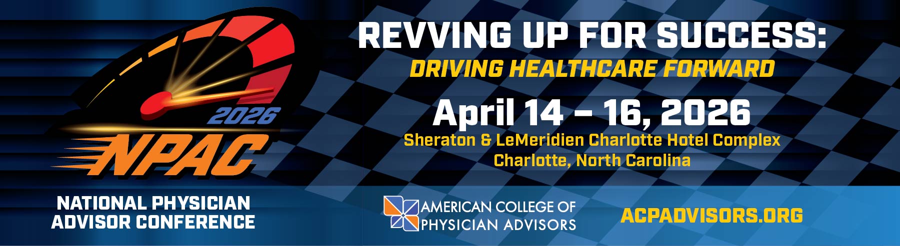 ![]() NPAC 2026 - WelcomeJoin us in Charlotte, North Carolina — the “Home of NASCAR” — for the American College of Physician Advisors’ 2026 National Physician Advisor Conference (NPAC 2026)!From April 14-16, 2026 NPAC 2026 will be held in-person at the Sheraton and LeMeridien Charlotte Hotel Complex. This year’s theme “Revving Up for Success: Driving Healthcare Forward” captures the spirit of innovation, leadership, and collaboration that physician advisors bring to healthcare every day. NPAC 2026 will feature a dynamic cross-section of presentations designed for physician advisors at every stage and is offered in-person or virtually. Whether you’re new to physician advising or a seasoned leader, you’ll find content that matters — from essential core concepts to cutting-edge ideas and programs shaping the future of the field. The agenda includes two-and-a-half days of dynamic content along with our ever-popular networking opportunities, consistently ranked by attendees as some of the most energizing and supportive experiences. Attendees can also earn valuable CME Category 1 credits with one of the best-in-industry cost per credit, and new this year we will also offer MOC credit for certain sessions and specialties. Details coming soon. Virtual attendees will gain access to the same cutting-edge insights from industry experts and have the opportunity to earn CME and MOC credits, all while enjoying the flexibility of participating from home or the office. Welcome Reception!Join your colleagues for an evening of networking and discovery at the NASCAR Hall of Fame on Monday, April 13 to help get our engines running and revved up for an exciting conference. Food and refreshments will be provided. This event will be complimentary for registered conference attendees.* *Guest passes for spouses and partners may be available, with additional details to follow. NPAC 2026 Pricing, Fees & Registration*Essentials and Fundamentals will be on April 13, 2026, requiring separate registration. ![]() Christopher Boyle, MD ![]() Sumana Narasimhan, MD ![]() Anuja Mohla, DO, MBA, ACPA-C ![]() Nadine Koser, DO, ACPA-C ![]() Sam Murray, MD, MBA, ACPA-C |